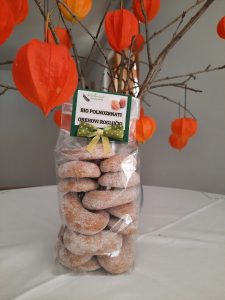 Sestavine; pirina moka, orehi, sladkor, kokosova maščoba, vinski kamen, vanilijin sladkor